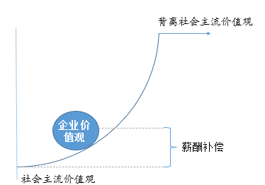 作为一家专注在职位体系、薪酬体系和绩效体系设计的管理咨询公司,我们的企业文化审计不是研究企业文化和战略的匹配度,而是研究一家公司的企业文化和社会主流价值观的匹配度。思路如下:社会的主流价值观是最多人认可的价值观,企业的价值观和主流价值观符合度越高,就越能吸引更多的人才,企业价值观和主流价值观符合度越低,价值观匹配的外部后候选人就越少,从而就需要更多的薪酬吸引。
